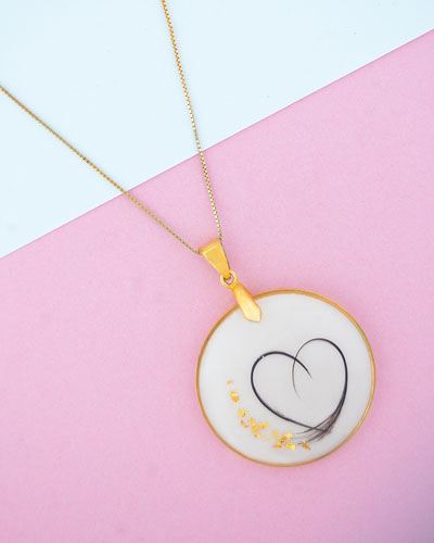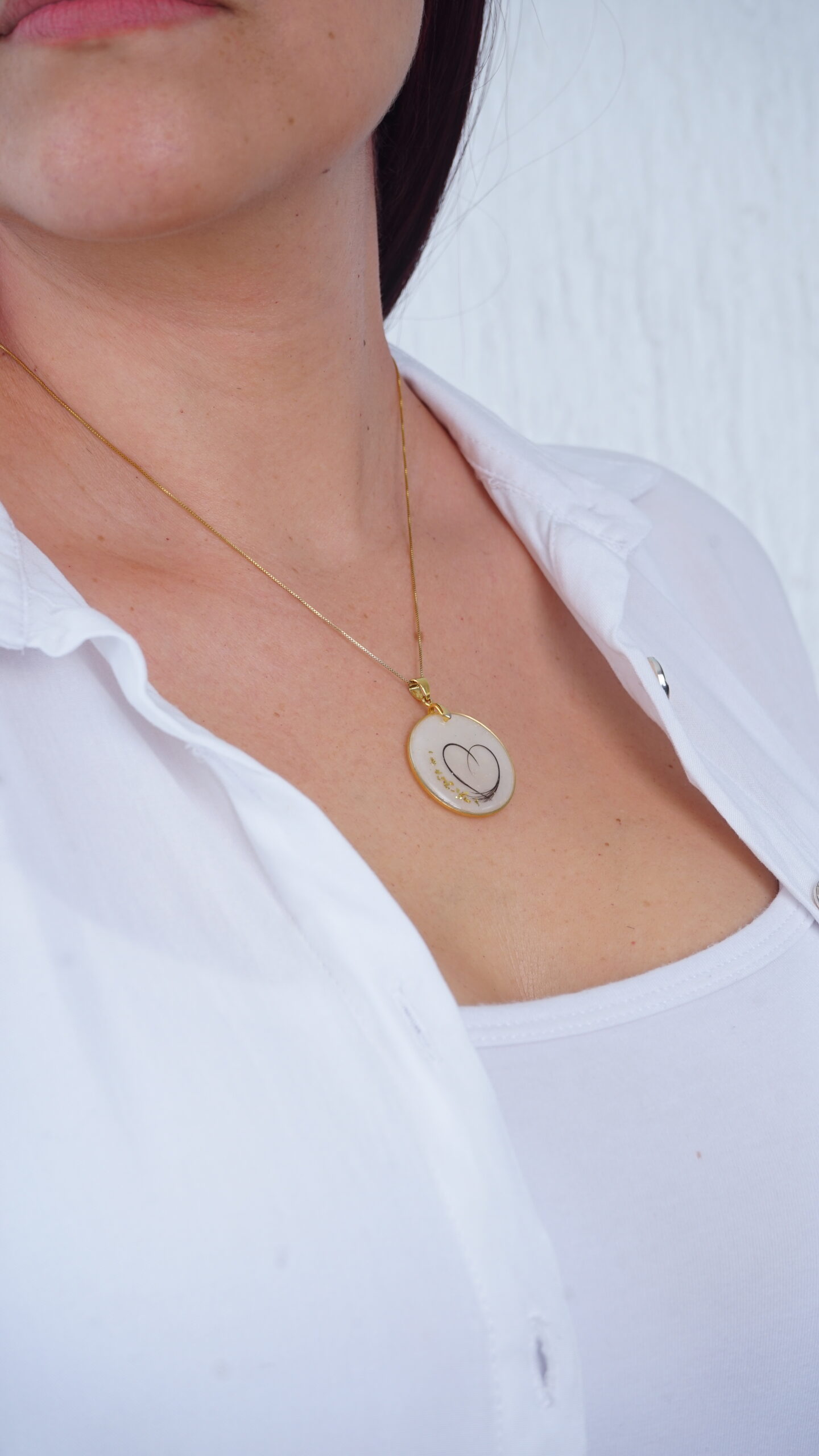 Maravilloso colgante redondo que permite atesorar varios elementos (pelito, trocitos de cordón, y mucho más), para llevar muy cerquita del corazón.