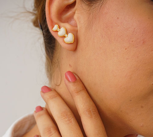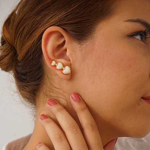 Hermoso arete solitario trepador, compuesto por 3 corazones unidos en los cuales puedes atesorar los mas bellos recuerdos.